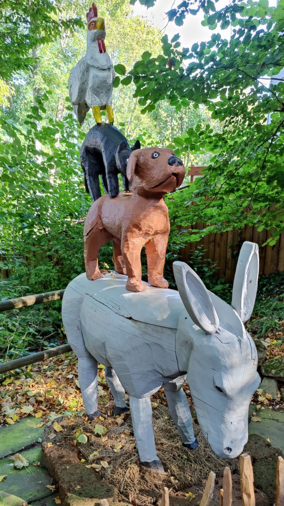 During this time, we would find a quiet place for one of us to sit with Maxine while the other would wait in line for food. We also loaded her with water and treats to reward her fantastic behavior. There were plenty of other dogs at the Pumpkin festival. All must be on a leash and are not allowed in certain areas on the palace grounds (bird exhibits and the gardens). We ended on time at the festival by wandering through Storybook Park. This was a unique and cool experience. They had animated exhibits of various storybooks (Rapunzel, Hansel and Gretel, Snow White, and more).