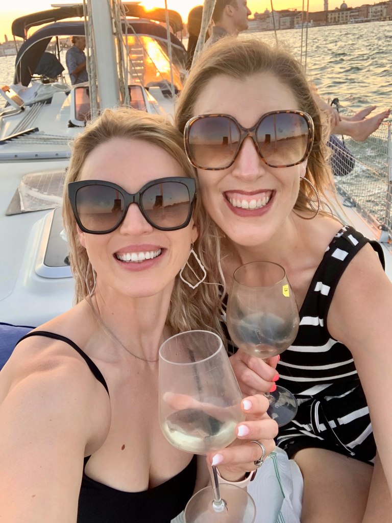 We arrived at the docks with not a minute to spare since we had the wrong address. We boarded the sailboat with our guide Ernesto and four others. This excursion was amazing! Ernesto provided fabulous seafood appetizers and lots of prosecco. He let anyone who wanted to try sailing the boat and anchored us in a beautiful location to watch the sunset. The conversations, music, and atmosphere were amazing. I have linked the excursion at the bottom of the post. We took our water bus home and had a late-night dinner consisting of ravioli, gnocchi, and tiramisu for dessert!