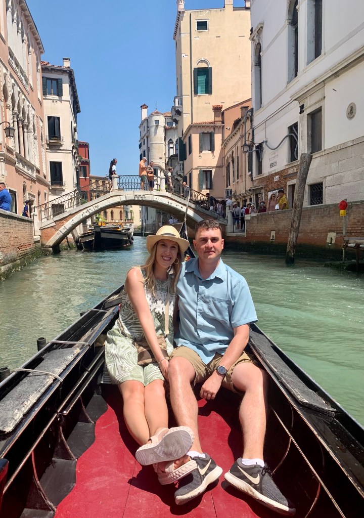 We were fortunate with the location of our Air BNB to be next to a small grocery store. When we woke up, we ventured over for breakfast items and snacks. We also grabbed some drinks and were shocked to discover some bottles of Prosecco cost 0.99 euros! Our day was filled with getting lost in the streets of Venice. We wandered past Saint Mark’s Basilica, the Rialto Bridge, and the San Macro area. We ate lunch at a restaurant near the Rialto Bridge and watched the gondolas go by.