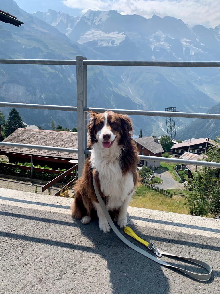 On our adventure to the falls, we were in awe of the glacier rivers flowing and beautiful scenery. There were some quieter parts of the river, so Maxine could take a dip and cool off. The best part of the walk was seeing a cheese, wine, and meat vending machine! We stopped back another day to grab some fun treats. The Trümmelbach Falls are a must-see in Lauterbrunnen. They have different stops along the mountain where you can get soaked from the water and different angles to observe the falls. However, they are not dog-friendly. The falls produce a cool breeze, so we took turns sitting in the shade with Maxine while the other explored. On our way back, we stopped at the bar across from our Air BNB (Horner Pub) for some drinks before returning and making dinner. We were so happy to be in Switzerland!